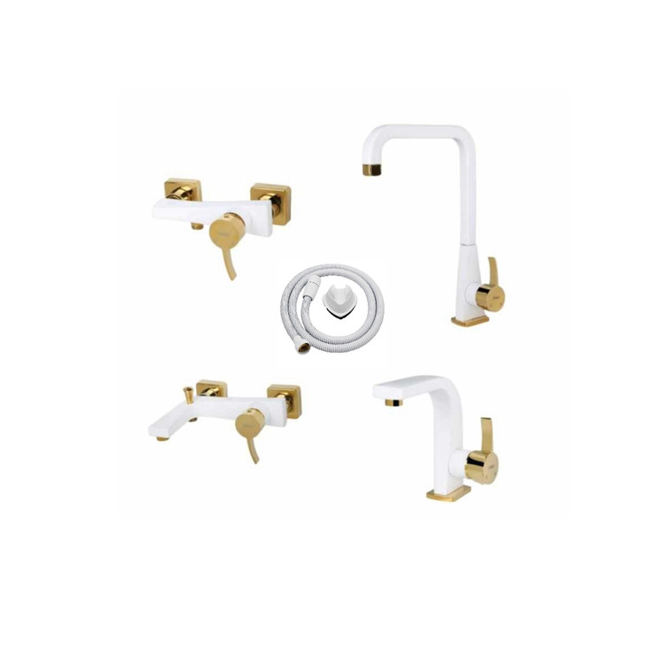 شیرآلات کسری مدل فیروزه سفید طلایی مجموعه پنج عددی