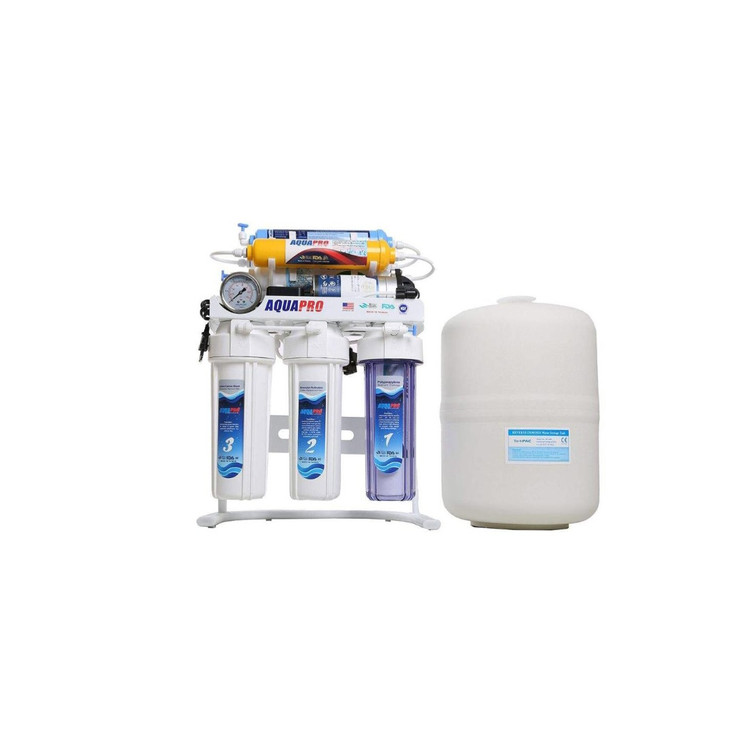تصفیه آب طی 6 فیلتر و 6 مرحله و همراه با فیلتر ممبران 13 لایه آمریکا دارای مخزن 16 لیتری-گیج فشار بزرگ-پمپ 125psi-هوزینگ های دوبل اورینگ برای آب بندی و بهتر - شیر اهرمی برای برداشت آب تفصیه شده