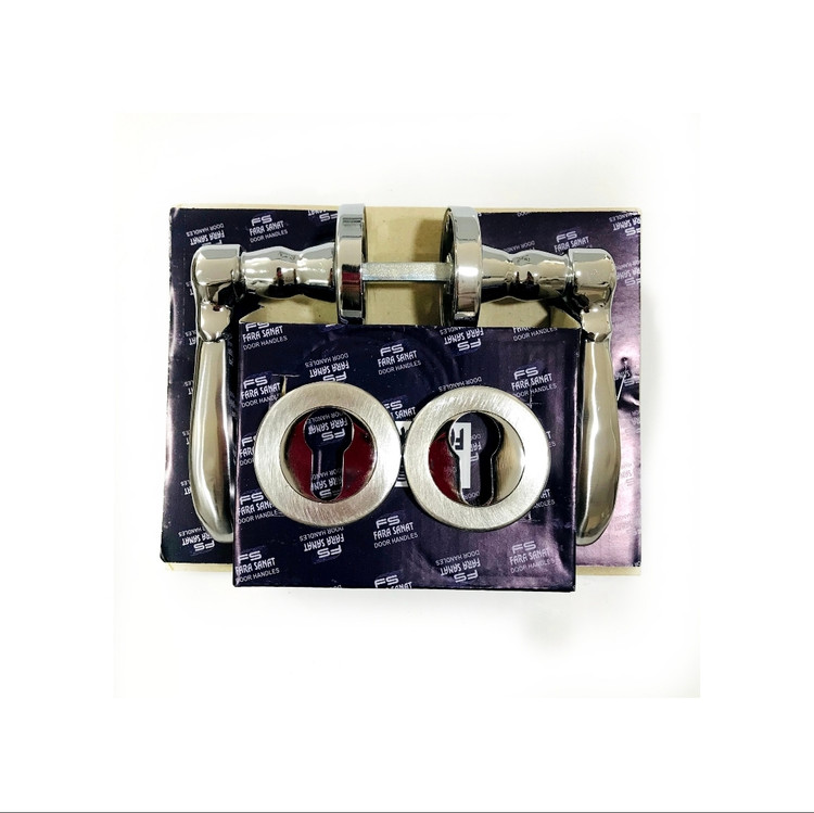 دستگیره درب دوتیکه از برند بی نظیر فارا صنعت با بهترین کیفیت با خرید این پک تمام محصولات مورد نیاز برای نصب دستگیره درب که شامل دستگیره، قفل مغزی، سیلندر و کلید میباشد را دریافت خواهید کرد.